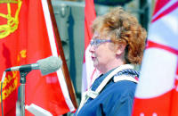 NYHETER. Årets första maj-firande blev en livlig tillställning. Socialdemokraternas ärtsoppa gick åt i ett nafs och vid Lions loppmarknad var det så bitvis svårt att ta sig fram i folkvimlet. Socialdemokraternas partiordförande Barbro Sundback och regeringsledamot Camilla Gunell gick hårt åt landskapsregeringens språkpolitiska program i sina första maj-tal, medan fackföreningen FOA-Ås ordförande Ulla Andersson bland annat riktade kritik mot de arbetstagare som inte är med i facket. – Jag vill gå så långt att de som inte är med i facket inte heller skall ha samma förmåner som de som är med. Snålskjuts är inget som jag prioriterar, sade hon. Hela 140 motorcyklister deltog också i årets mc-parad.Sidan 13