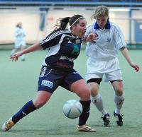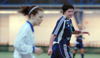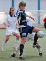 I fjolårets sista ligamatch på hemmaplan blev Åland United rejält utspelade på WHA av FC United som slutade på andra plats i serien. Då lagen möttes i ligacupen i lördags var det åländskorna som höll i taktpinnen. Efter ganska slarvigt spel inledningsvis så bjöd åländskorna på några fina kombinationer i slutet av första halvlek. – Stundtals var det över förväntan med tanke på årstiden och ur långt vi kommit i träningen, tycker ÅU-tränaren Robert Dahlin. Bjöd inte till Annica Sjölund gjorde matchens enda mål då hon nickade in en hörna som Daniela Haglund slog i den 39:e minuten. Bollen tog i underkant på ribban och damp ner bakom mållinjen. Sjölund hade även två frilägen men hon lyckades inte överlista landslagsmålvakten Minna Meriluoto som gjorde många fina ingripanden och höll siffrorna nere. – De har den bästa målvakten i Finland, erkänner Dahlin. FC United, som tappat landslagsduon Petra Vaelma och Katri Nokso-Koivisto till svenska Bälinge, kom till start utan sina nigerianskor Cynthia Uwak och Rita Chikwelu. Och Jakobstadslaget var synnerligen uddlösa. Åsa Fors hade inte några stora problem att hålla sin nolla i ÅU-målet. – De bjöd inte till mycket, säger Dahlin om FC United. Tillföra mycket Bästemanspriset i Åland United gick, välförtjänt, till nyförvärvet Eveliina Kohvakka som gjorde en prickfri insats som mittback. Placeringssäkre Kohvakka var lugnet själv. Åländskornas andra nyförvärv Natalia Rickne hördes och syntes mycket. Rickne styrde och ställde och gav allt i närkamperna. – Hon är tuff och stark, säger Dahlin om Rickne. Kohvakka och Rickne ska ersätta Ulla Matikainen och Rosa-Lappi Seppälä som bägge gick till PuiU. Dahlin ser Kohvakka och Rickne som en bättre lösning då de bägge kan vara med och träna hela tiden. Varken Seppälä eller Matikainen bodde på Åland. – De är två tjejer som kommer att tillföra mycket, tror Dahlin om ÅU:s nyförvärv. BJÖRN EKLUND bjorn.eklund@nyan.ax