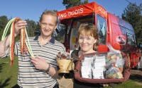 En god nyhet är det kanske också för tandtrollen. Och för hela bantningsindustrin. För mycket av det goda kan ju som bekant vara … alldeles alldeles underbart. – Ja, usch vad jag snaskade i helgen när jag stod och sålde, erkänner Bea Eriksson. Vi förespråkar måttlighet, förstås. Lördagsgodis är en bra idé. Men när man väl köper godis så ska det vara gott. Riktigt gott, tycker jag. 170 kg godis Paret har tagit över godisbilen efter firma Solbacka smycken. – Vi säljer 17 olika sorters godis, berättar Tommy Nordin. På tre försäljningstillfällen har det gått åt 170 kilo. Till vardags är Bea Eriksson närvårdare och städare. Tommy Nordin är hallvärd i Eckeröhallen. I deras pusselfamilj ingår tillsammans sex barn som alla hjälper till med godisbilen, om inte annat med att provsmaka. Det är Jennifer, 18 år, Alex, 16, Josefin, 14, Fanny, också 14, Fredrika 12, och Frida 9 år. Farmor Maja Nordin säljer grytlappar och annat hantverk i bilen. Godiset kommer från Sinikka Karttunen i Borgå. KIKI ALBERIUS-FORSMAN kiki@nyan.ax