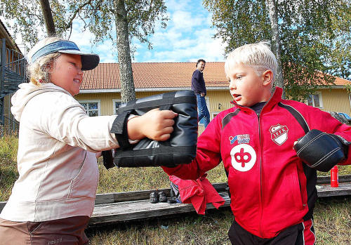 Testboxades. Syskonen Sandra och Jacob Söderman fick testa på boxercise när Finströmsdagarna arrangerades för 15:e gången.