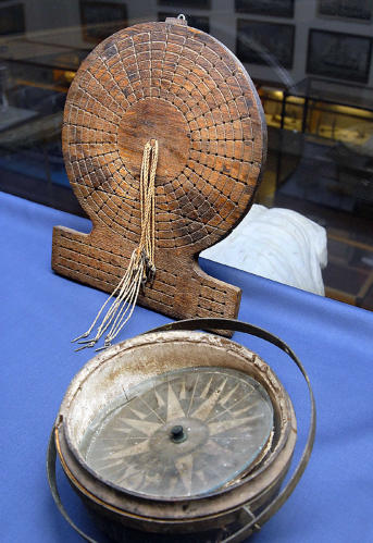 Kompasser. Pinnkompass och en något modernare skeppskompass.