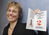Visst, kondomen väger två gram, en sjukdom som hiv är betydligt tyngre. Röda Korsets Ålandsavdelning har gjort en egen svenskspråkig folder som dels innehåller en kondom, men också det röda bandet som sedan 1991 är en internationell symbol för Aids. Det är det sista stadiet av hiv-infektionen, som slår ut de vita blodkropparna och därmed kroppens immunförsvar. – Det behövs en påminnelse om hiv, att man tänker på det, säger Fia Nordberg-Gäddnäs. Föreläser Kondomen är viktig för att skydda sig mot hiv i samband med sex, samtidigt som den också skyddar mot andra könssjukdomar och förstås mot icke önskade graviditeter. I februari och mars skall Fia Nordberg-Gäddnäs åka runt och föreläsa i gymnasieskolorna om det här. Med Röda bandet visar man sitt stöd ”mot diskriminering och stämpling av hiv-positiva, för kontinuerlig utbildning, för maximala insatser att utveckla vård och vaccin och för alla som förlorat en vän, en familjemedlem eller käraste på grund av hiv”. ULF WEMAN ulf.weman@nyan.ax