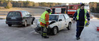 Den ena bilen, som kom ifrån Godbyhållet, hade fått sladd vid en inbromsning, sedan framförvarande bil skulle svänga vänster. Bilen kom över på fel sida av vägbanan och kolliderade med en mötande bil som kom österifrån. Tre personer fick därefter föras till sjukhuset i två ambulanser, och togs in för observation, men skadorna torde inte ha varit allvarliga. Räddningsuppdraget handhades av Östra Saltviks FBK. – Väglaget vid olycksplatsen var mycket halt, uppger brandchef Lennart Johansson. (lt)