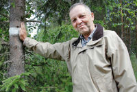 Det har varit mycket arbete bakom Lemlandsleden, 25 kilometer lång, och Jomalaleden, 40 kilometer. När Georg Blomqvist, snart 70 år, börjar berätta blir man matt. Han håller med om att det kanske blev ”lite mycket för en pensionär ibland”. Men nu är de båda lederna så gott som klara. Ännu saknas i princip bara information i form av skyltar utmed lederna och broschyrer, som kan dröja ända till hösten innan de lämnar tryckeriet. Vita ringar Men redan i dag kan ålänningen ge sig ut och traska i skog och mark, genom byar och längs stränder. Det är bara att följa de vita ringarna i skogen och stolpar med vit markering utmed vägarna. – Det ska vara lätt att vandra. Ja, näst intill omöjligt att gå fel. Markeringarna sitter tätt, säger han. Lederna ska också vara lätta att underhålla. Tanken har varit att så långt som möjligt dra dem över marker som inte så snabbt växer igen. För underhållet svarar Lemlands respektive Jomalas fritidsnämnder. Georg Blomqvist har gjort sitt nu. – Det är bra med utmärka leder. Där vet man att man kommer fram och att man får gå där man går. Skogskarl Georg Blomqvist är som skapt för att ställa i ordning vandringsleder. Han är skogskarl från allra första stund, född som han är i det som han kallar Ålands torraste by, Sund Gesterby, som inte har mycket till vatten i närheten, bara en liten skogstjärn. Han gillar skogen. Utbildades sig till skogsbruksingenjör i Ekenäs och i över 35 år arbetade han i Ålands skogsvårdsförening som rådgivare och skogsservice. – Det blev mitt yrke att vandra i skogen. Skogstjänst Ännu i dag utför han skogsvärdering och andra skogsbruksuppdrag i firman Blomqvists skogstjänst. På fritiden orienterar han sedan 50 år tillbaka. Hugger ved till huset från den egna skogen, snickrar, släktforskar, simmar, är med i styrelsen för intresseföreningen för Ålands jord- och skogsbruksmuseum och basar för Lemlands biblioteks- och kulturnämnd. Motstånd Som sagt; vem kan vara med lämpad att leda oss på rätta stigar i skogen? Ändå tvivlar han något själv. Det beror på det motstånd han mött från markägare i vissa fall. – De allra flesta har varit positiva eller rent av entusiastiska. Men jag har svårt att förstå motståndet i vissa fall. Varför har man så mycket emot att låta folk vandra på en stig över sina ägor? Men jo. Var 20:e människa är negativ, har jag lärt mig. Det verkar stämma i det här fallet också. Speciellt äldre damer säger nej. De kanske är rädda eller tror att vandringslederna ska bli välbesökta och att det plötsligt ska vimla av folk över ägorna. `Ger man dem ett lillfinger så tar de hela handen´, det är en attityd som är alltför vanlig. När stigen går nära huset, eller mellan bostadshus och uthus, då kan Georg förstå att markägare säger nej. Men ibland är motståndet svårbegripligt. Skolstig Vandringsledernas sträckningar är nu beroende av markägarnas tillstånd. Lemlandsleden sträcker sig från Lemströms kanal, söderut på Björkuddsvägen, över Lemböte och Kopnäs. – Här följer vi faktiskt Kopnäsbarnens gamla skolväg upp mot Söderby. Den är markerad med stenar. Det fanns nio barn i en familj där en gång. Nu följer vi deras stig till skolan genom skogen. Etappvis Upp på Kasberget bär det och förbi kyrkan, över Bistorpberget – där det finns en gästbok i en låda vid stigen – och förbi ”Plökke”. Platsen kallas så efter en man vid namn Plökki som bodde där i mitten av 1800-talet. Vid Bäckäng viker man ner mot stora vägen och följer sedan gång- och cykelbanan till Lumparsund. – Man ser ofta att många är ute och travar på längs vägrenarna, men det ger så mycket mer att röra sig på stigar ute i naturen. Leden ska avverkas i etapper. Man kan göra som jag. Jag sätter en cykel vid kyrkan och så kör jag bilen till startplatsen, exempelvis Lemströms kanal. Då kan jag vandra leden en lång sträcka och snabbt cykla tillbaka till bilen sedan. En organiserad vandring har redan skett längs leden, från Lemström till Plökke. Det tog sju timmar. Hemligt tips Jomalaleden är ett EU-projekt. Leden ansluter till Sadelinleden i Finström Emkarby och går söderut genom Jomala, Dalkarby, Borgberget strax söder om Dalkarbyberget med en ganska okänd utsikt över Mariehamn, och sedan över Ramsholmen, Kungsö och till Hammarudda. Den som läst så här långt om vandringsleder är antagligen naturälskare som inser att naturens under ska få stå kvar på sina rätta platser i naturen. Därför kan vi lugnt föra Georgs tips om ett guckuskobestånd vid Kungsövägen vidare. Man svänger av till vänster på Hammarlandsvägen från Mariehamn, där det står ”Kungsö 2”. Där går också cykelvägen. Efter ett par hundra meter syns en vit markering och en stig in till höger. Parkera och gå in i skogen där, ett par hundra meter in finns ett helt underbart stort område med mängder av guckusko. Se men inte röra! Rätta tiden är just nu. Tack för tipset Georg! Och tack för vandringslederna! Text & foto: KIKI ALBERIUS-FORSMAN kiki@nyan.ax