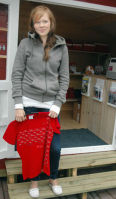 I det lilla, rödmålade huset träffar vi Sofia Nordlund. Hon besvarar snällt min fråga: – Det är Röda Korset som har ställt upp den här boden över sommaren. Här informerar vi om Röda korset, säljer första hjälpen-väskor och en massa annat. Vill man bli medlem kan man gå hit och få en blankett. Då man har fyllt i den så lämnar man in den på banken. • Är du själv aktiv medlem? – Nej, det har jag inte varit förut i alla fall. Det här är det första jag gör inom Röda korset, jag har sommarjobbat i en vecka nu, säger Sofia. Röda korset har haft en liten butik uppe på Röda kors-gården. Syftet med att flytta ner den till torget är dels för att sälja lite bättre, och dels att synas mer, så att fler kan nås med information om verksamheten. – De flesta som kommer in undrar mest vad det är för ett hus som står här. Men vissa tar också broschyrer eller vill titta vad som finns i väskorna och så. Folk verkar nog intresserade, säger Sofia. LINNEA TILLEMA linnea.tillema@nyan.ax