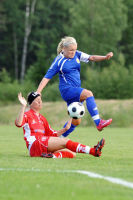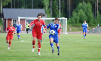 Gårdagens seger mot Gotland var lika viktig som den var skön. Jämnt så det förslog i den första halvleken med två bra försvar som inte släppte till mycket bakåt. Närmast ett mål var duktiga Hannah Salmén som hade ett skott i ribban efter cirka 25 minuters spel. Till den andra halvleken kom Åland ut som ett mer aggressivt lag och fyllde dessutom på bättre med mittfältet i det offensiva spelet. Om Gotland hade lite mer av spelat i första så var det definitivt Åland som var bäst i andra. – Vi gick upp på två forwards istället för en och fick större tryck på dem. Samtidigt fick de fler spelare att hålla reda på och vi fick en nytändning när vi fick in nya ben, säger Ålands tränare Bengt Johnsson. ”Kändes underbart” Segern betyder att Åland i praktiken redan vunnit grupp A och därmed också kan räkna med ett något lättare motstånd i semifinalen. – Nu kan vi slappna av i den sista gruppspelsmatchen och jag tror inte att Gotland gör 14-15 mål mot Grönland om det nu blir så att vi förlorar mot Jersey, säger Johnsson. Emma Liljegren gjorde Ålands första mål i den 69:e minuten efter en fin framspelning från Ing-Marie ”Mimmi” Holmberg och fem minuter senare höll sig vänsterbacken Maryette Karring framme på ett inlägg från den andra kanten. – Det kändes underbart, säger Karring om målet. Det var på en kontring, Hanna Salmén hade bollen på högerkanten och jag följde med upp. Hon slog ett perfekt inlägg och jag dunkade in den. Och det var en riktigt glad målskytt som fick avgöra för Åland i gruppfinalen. – Det var fantastiskt att få göra mål och speciellt i en så viktig match, säger Karring. • Vad tror du nu om fortsättningen? – Det är klart att vi siktar på guld och det blir nog lättare nu när vi vann den här matchen, säger hon. Den sista gruppspelsmatchen spelar Åland i dag mot Jersey 19.00 på Markusböle och vid en semifinal blir det match på fredag 18.30 antingen på Bengtsböle eller på Hammarvallen. JOHAN LARSSON johan.larsson@nyan.ax Foto: FREDRIK TÖRNROOS fredrik.tornroos@nyan.ax