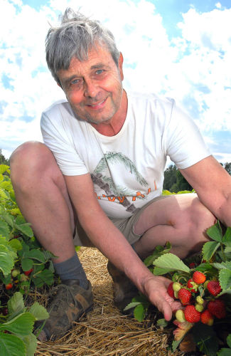 Kort säsong. Göran Lindblom från Knutsboda tror att jordgubbssäsongen blir kortare än normalt i år. Foto: ERKKI SANTAMALA