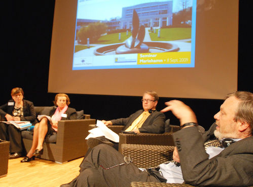 Seminarium. Regionutvecklingsdirektör Veijo Kavonius från inrikesministeriet, kansliminister Roger Eriksson, vice ordförande i regionkommitténs konstitutionella utskott Claude du Granrut och vice lantråd Britt Lundberg var några av dem som intog Alandicas stora scen under gårdagens seminarium på temat flernivåstyre.